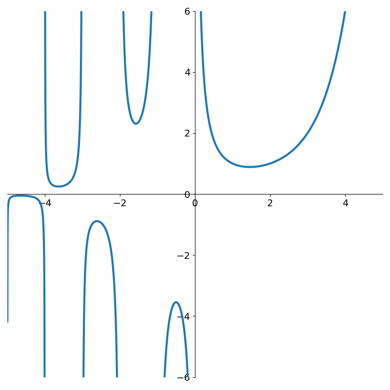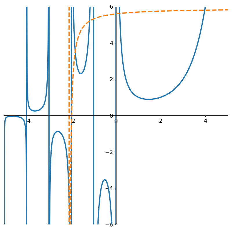 The logarithm is a relatively simple function, but what happens if we apply this least squares method to a less well behaved function? One with many asymptotes and discontinuities?